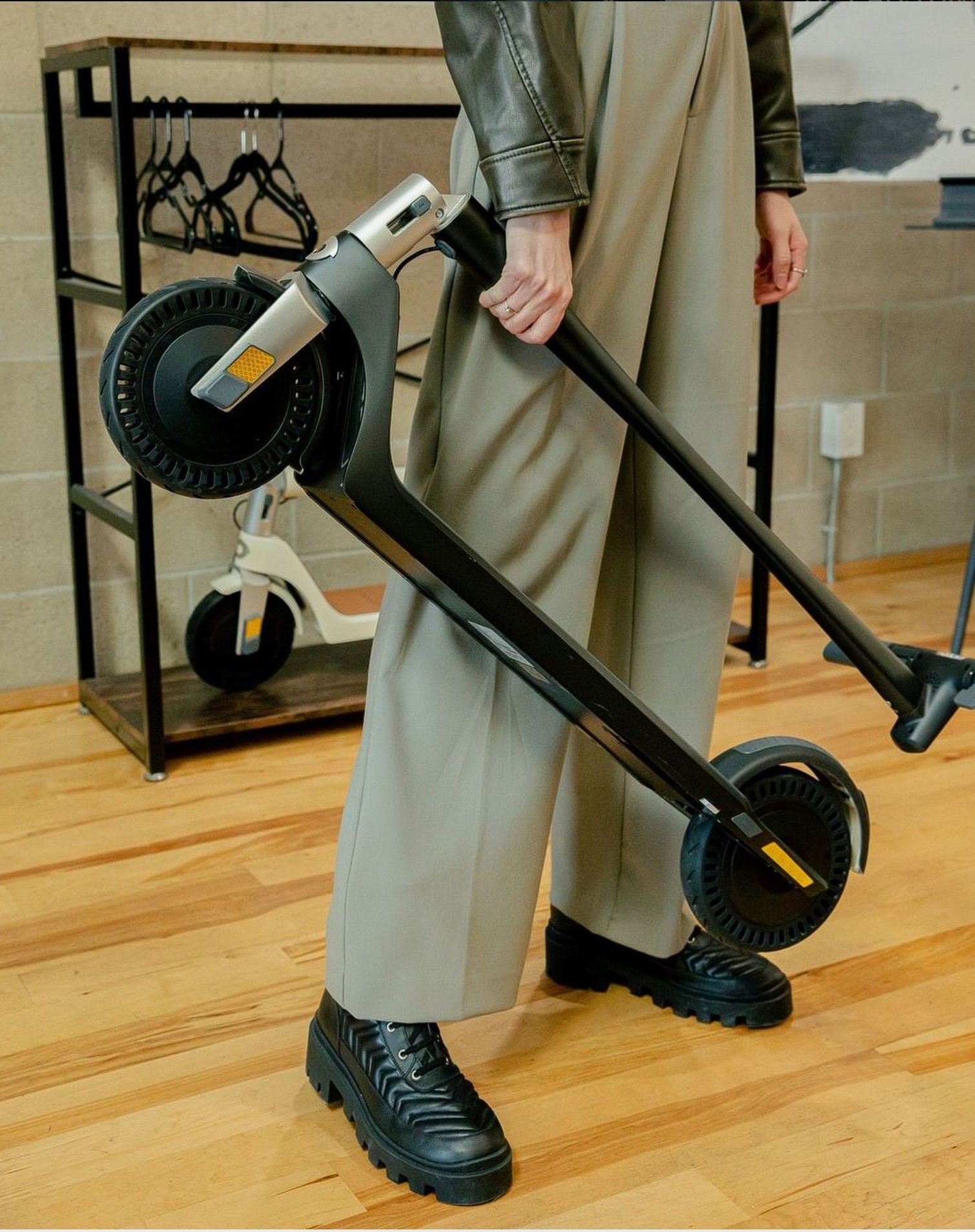 The FLEX, on the other hand, keeps things simple and functional. It comes only in black and avoids flashy aesthetics. Its form might catch your eye, though, as it looks like a love child of an e-scooter and a bike.