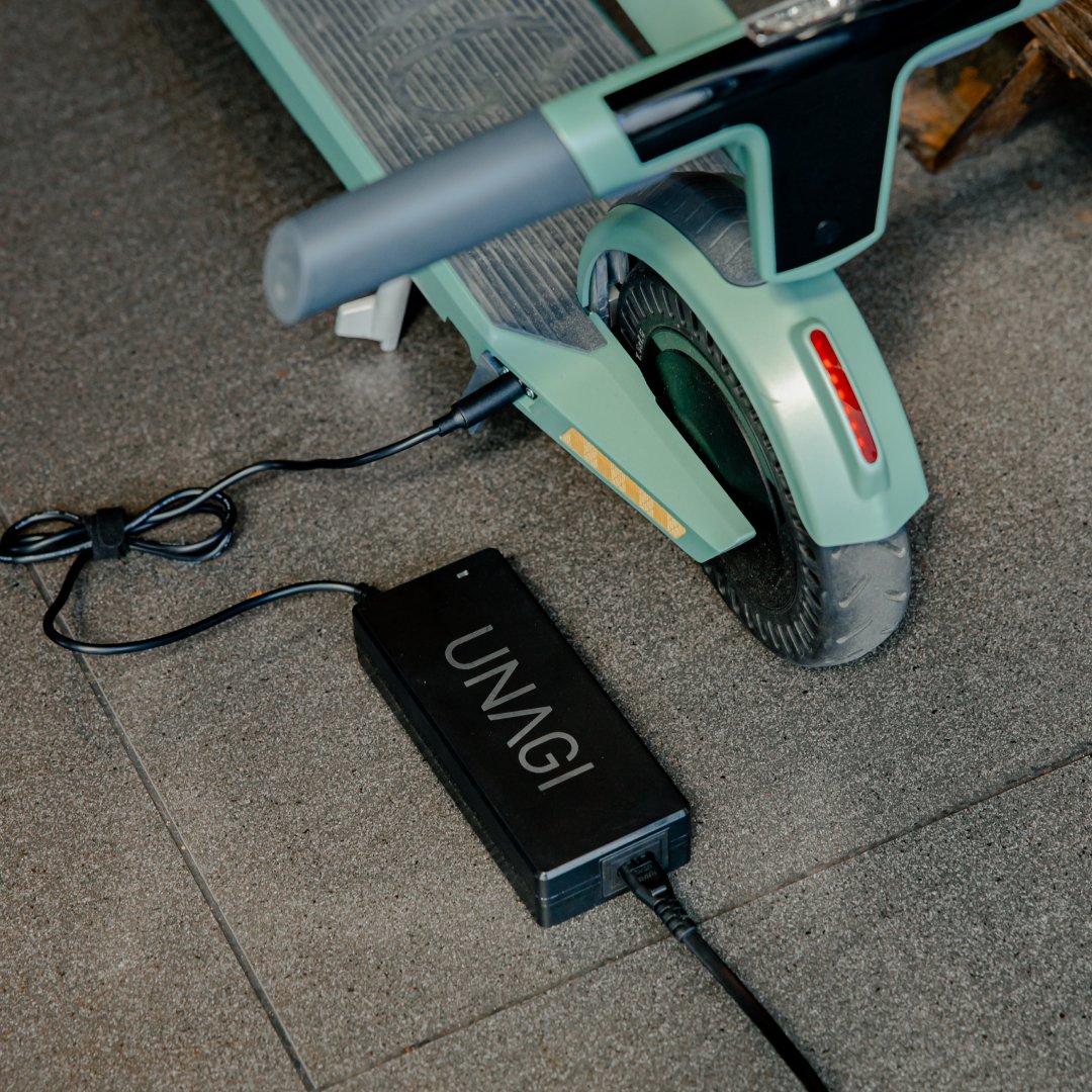 For example, the Unagi Model One Classic takes about 4.5 hours to charge. This model comes with a 259Wh (9Ah) battery paired with a 67.2W charger, which is pretty standard for a lightweight commuter electric scooter.