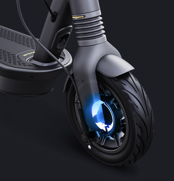The Ninebot Max G2 electric scooter has a full suspension setup. It has a high-quality front hydraulic damper and rear adjustable double spring suspension, which give the scooter a premium feel when riding over obstacles.